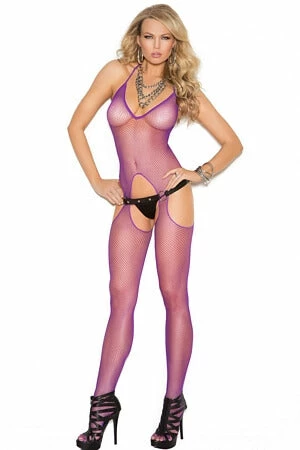 Fishnet suspender bodystocking with open crotch. **Sizing Note – One Size should work for you, if you normally wear XS, SM, MED, and sometimes LG.