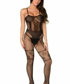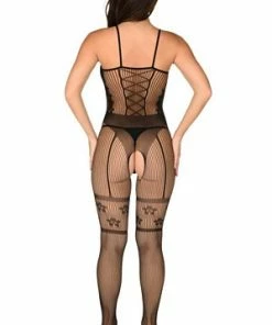 Feel sexy and unique in this fishnet bodystocking. It features spaghetti straps, floral and faux garter print design with an open crotch. **Sizing Note – One Size should work for you, if you normally wear XS, SM, MED, and sometimes LG.