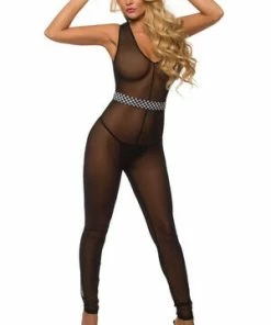 Hot pink crotchless teddy features side lace panels, adjustable shoulder straps, and a satin bow at center front.