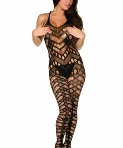 Feel sexy and unique in this one of a kind fishnet bodystocking. It features hole cutout detailing, unique design and open crotch.