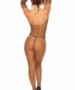 Simple yet seductive, this net bodystocking features off the shoulder long sleeves and open crotch.