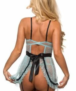 • Features underwire cups, an apron tie-style tie back and adjustable straps