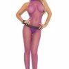 The perfect two piece to spice up your night! Featuring a high neckline bralette that has a cute circular cut out. Centered with a bow detailing and imprinted in sheer, lace detailing. The garter tights replicate the lacey embroidery and hug your legs, while showing the right amount of skin! A fishnet design that wraps the bottom of your legs blending the look into a perfect match. Play around with your lingerie and discover the power of Killer Legs!