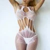 Release your inner sex kitten when you slip on this gorgeously seductive sheer lace and fishnet bodystocking. This all-in-one lingerie combines the skin-tight look of a basque, with leg-flattering stockings.